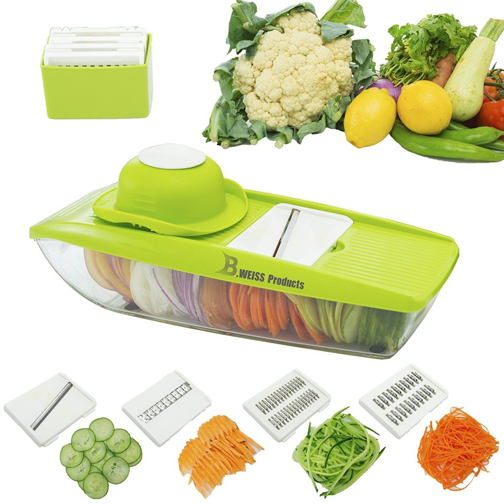 Kitchen prep work can be messy and tedious, but quality cuts are well worth the wait. With the Multipurpose Mandoline Set by Weiss, you can handle every complex chopping task without the tiresome handwork. The complete system includes 7 different slicing accessories and a catch and store container for utmost convenience. Now you can perfectly slice and dice a variety of veggies, fruits, and other firm ingredients with exceptional ease and safety. The interchangeable parts also quickly disassemble for swift cleaning and storage. So trade in your many appliances, and discover a multipurpose machine that always makes the cut!
